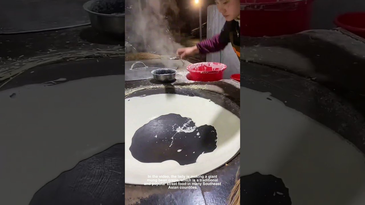 In the video, the lady is making a giant mung bean crepe, which is a traditional and popular street food in many Southeast Asian … source
